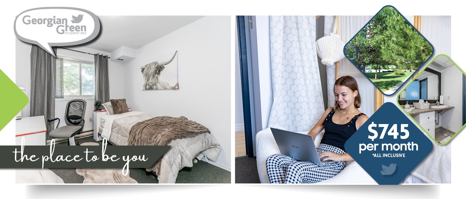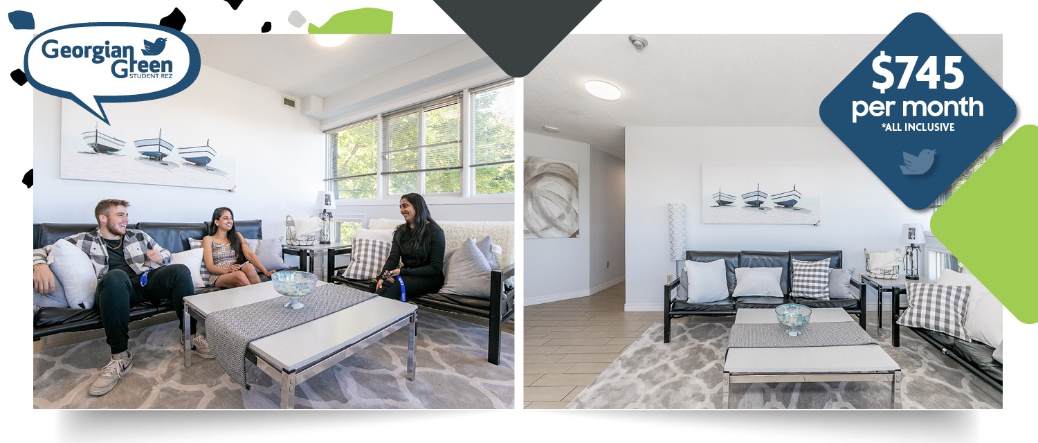 Looking for safe and secure student housing? Our student rentals are a place where you can re-charge and feel safe after a long day of classes. Enjoy peace of mind while living at Georgian Green and attending classes at Lakehead University Barrie STEM Hub & Orillia Campus. With our key controlled access to all buildings, locked suites and bedrooms, and digital video recorded monitoring of lobbies and hallways, you can rest assured that you’re in safe hands. We also have management and live-in resident assistants to assist you with your needs during and after business hours.